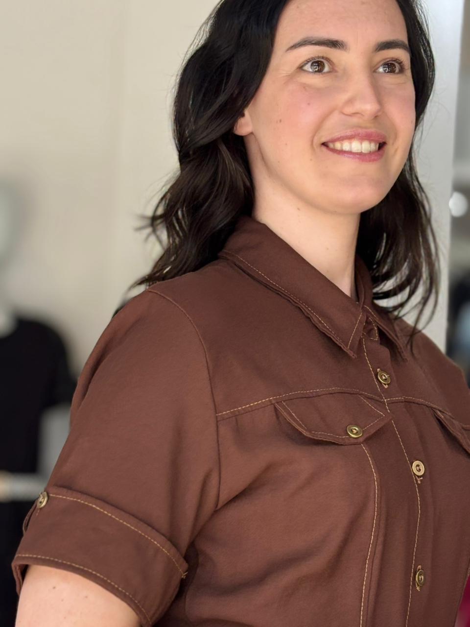 Vestido chamise alfaiataria marrant, com botões frontais funcionais, gola clássica e mangas dobradinhas. Elegante e super versátil, é ideal para quem busca um visual moderno e confortável. Disponível nos tamanhos M, G e GG.